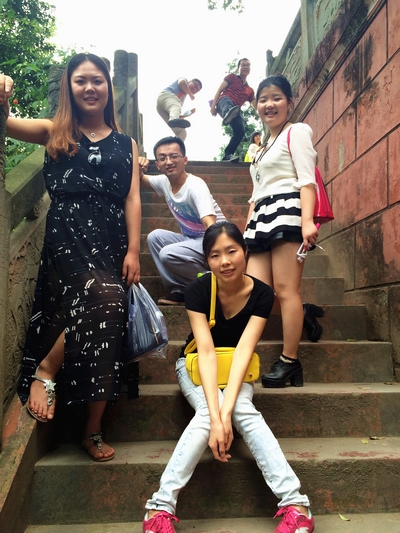 一個閑適上午,就這樣悄然而去,大伙兒帶著勝利的果實,滿載而歸。簡單的午餐后,休憩片刻,我們開始了今天的登山之旅——鶴鳴山。鶴鳴山是舉世公認的中國道教發(fā)源地,世界道教的朝圣地,被稱為“道國仙都”、“道教祖庭”。這里山勢雄偉、林木繁茂,雙澗環(huán)抱,形如展翅欲飛的立鶴。從山麓起有石級數(shù)千,拾級而上直達山巔,大家成群結(jié)伴,激動的向著山頂最高處前行。登山途中,大家相互間拍照留念,呼吸著新鮮空氣,身體的疲憊已經(jīng)被大自然帶來的清新和愜意所代替。置身大山的懷抱,感受濃濃的道教氣息,大伙兒都沉浸在這靜謐的山水之間,盡情享受著旅行中的樂趣。
